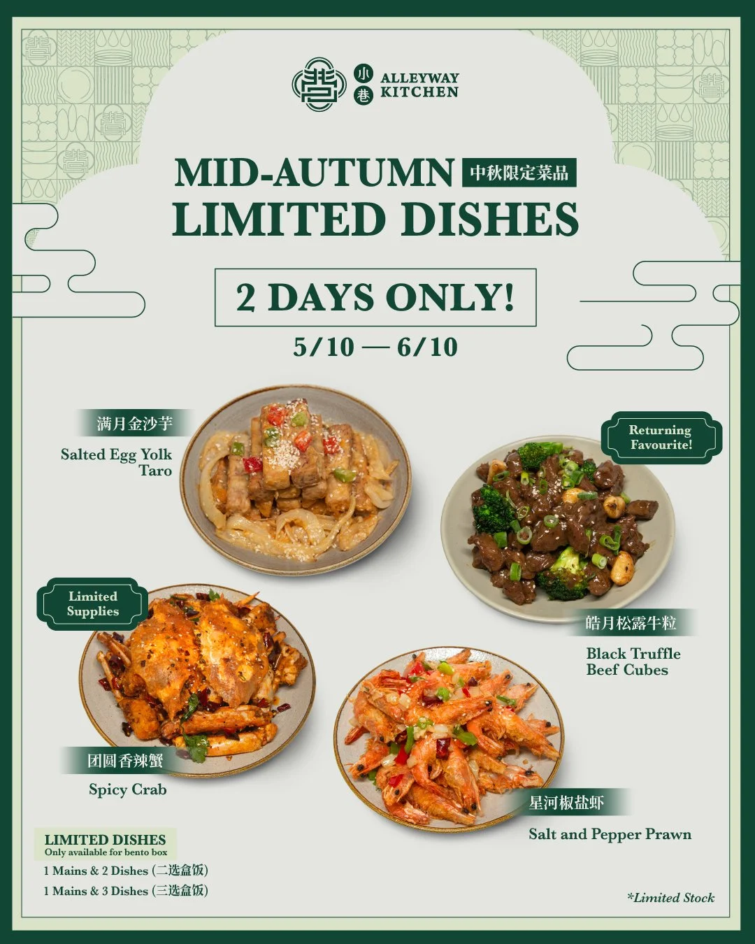The Mid-Autumn Festival is a time of reunion, warmth, and the simple joy of feeling at home, and this year, the Alleyway Group is pulling out all the stops to celebrate with you! Join us at Alleyway Kitchen and Fortune Alley as we embrace the spirit of this beautiful festival with a feast of limited-edition dishes, a fun "Scratch & Win" game, and a special mooncake giveaway.